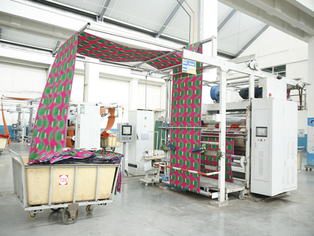 華紡股份有限公司花布公司是公司印染主導(dǎo)產(chǎn)業(yè)板塊的重要組成部分,集印花面料的設(shè)計、印制、后整及銷售于一體,擁有進口齊瑪20套色圓網(wǎng)印花機,由高效配套的水洗機、退漿機、雙面印花機、絲光機、蒸化機、拉幅機等裝備組成13條功能先進的印花生產(chǎn)線,輔以2條先進的自動調(diào)漿系統(tǒng);采用CAD滑行設(shè)計處理系統(tǒng)和先進的蘭光制網(wǎng)機、噴蠟制網(wǎng)機等,可根據(jù)客戶及市場需求設(shè)計花型,并自主研發(fā)引領(lǐng)時尚潮流的新花型。年產(chǎn)能力12000萬米,產(chǎn)品綜合出口率達(dá)80%以上,其中純棉真蠟印花布、純棉仿蠟印花布等100%外銷出口?;ú脊旧a(chǎn)工藝先進、產(chǎn)品質(zhì)量穩(wěn)定,技術(shù)含量高、市場份額大,長期暢銷非洲等數(shù)十個國家和地區(qū),其產(chǎn)品在非洲市場占有重要位置。
