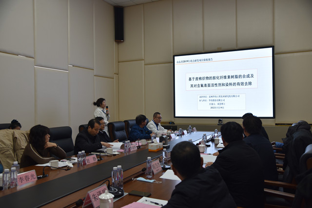 導(dǎo)讀:1月14日,山東省重點(diǎn)研發(fā)計(jì)劃(公益類)項(xiàng)目“基于廢棉織物的胺化纖維素樹(shù)脂的合成及其對(duì)含氟表面活性劑和染料的有效去除”項(xiàng)目驗(yàn)收會(huì)議在公司舉行。