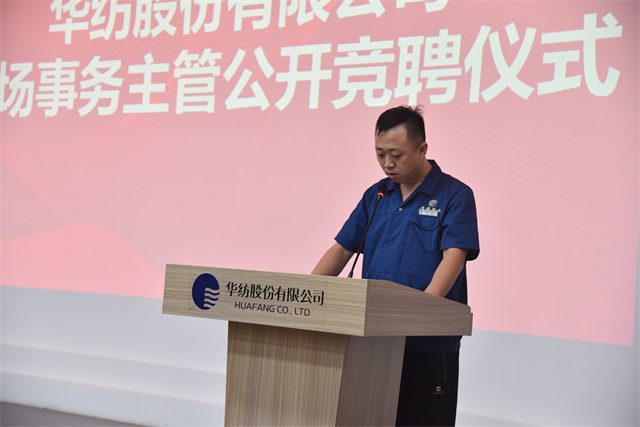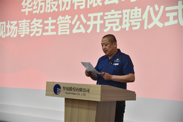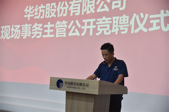 導(dǎo)讀:6月29日,公司在會(huì)議中心2號(hào)會(huì)議室舉行現(xiàn)場(chǎng)事務(wù)主管(面料車(chē)間、花布車(chē)間、家紡車(chē)間)公開(kāi)競(jìng)聘儀式。