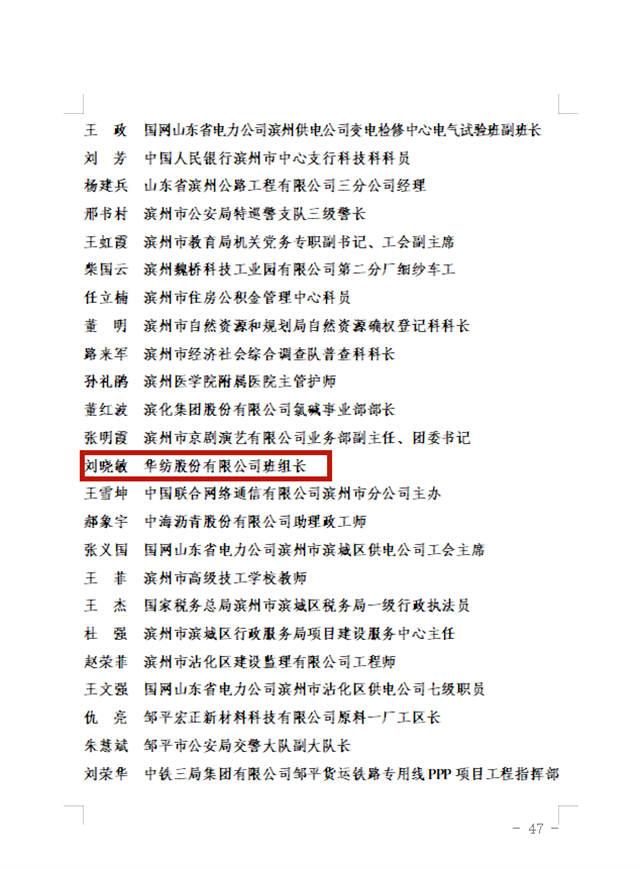 導(dǎo)讀:12月12日,山東省總工會辦公室發(fā)布了《關(guān)于公布2022年度山東省新時(shí)代崗位建功勞動競賽標(biāo)兵個(gè)人的通知》,公司劉曉敏獲“2022年度山東省新時(shí)代崗位建功勞動競賽標(biāo)兵個(gè)人”。