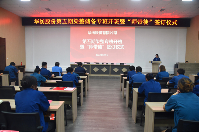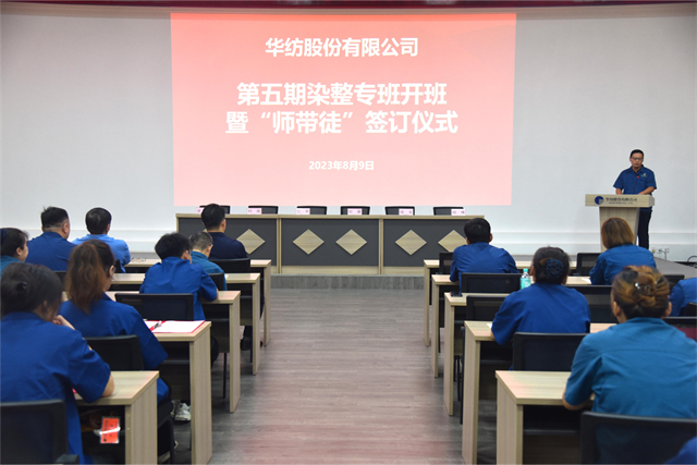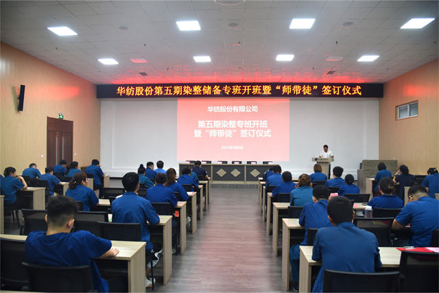 公司舉辦染整儲(chǔ)備專(zhuān)班開(kāi)班暨“師帶徒”簽訂儀