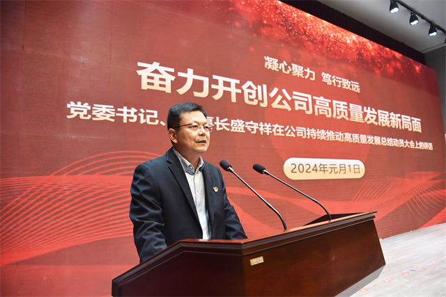 會(huì)議最后,盛守祥作了題為《凝心聚力 篤行致遠(yuǎn) 奮力開創(chuàng)公司高質(zhì)量發(fā)展新局面》的工作報(bào)告。報(bào)告全面總結(jié)梳理了公司過(guò)去一年的工作,深刻剖析了實(shí)際工作中的問(wèn)題,為新階段工作提出了指導(dǎo)性意見(jiàn)。2024年,公司主要工作概括為四個(gè)方面:一是堅(jiān)持黨建引領(lǐng),夯實(shí)政治保障;二是堅(jiān)持綠色發(fā)展,抓好環(huán)保安全;三是以架構(gòu)之變、價(jià)值作風(fēng)之變、績(jī)效之變、造血止血之變、團(tuán)隊(duì)之變開啟變革之年,全面突破在望;四是在“產(chǎn)業(yè)鏈、資金鏈、人才鏈、創(chuàng)新鏈、供應(yīng)鏈”上持續(xù)發(fā)力,共建百億家園。