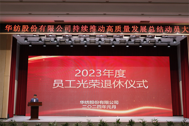 1月1日,華紡股份有限公司持續(xù)推動(dòng)高質(zhì)量發(fā)展總結(jié)動(dòng)員大會(huì)在會(huì)議中心一號(hào)會(huì)議室隆重召開。市國(guó)資委四級(jí)調(diào)研員王克寧,公司黨委書記、董事長(zhǎng)盛守祥,公司黨委、行政班子成員以及員工代表等五百余人齊聚一堂,總結(jié)2023榮光,展望2024宏圖,表彰優(yōu)秀、激勵(lì)先進(jìn)、凝聚共識(shí)、匯聚力量,以昂揚(yáng)的姿態(tài)譜寫公司高質(zhì)量發(fā)展的新篇章。