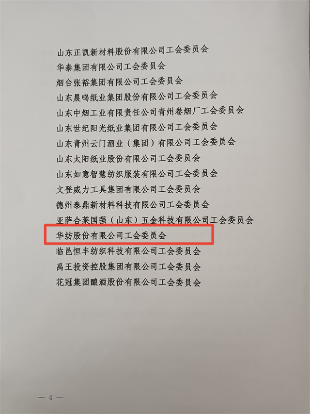 近日,省輕工紡織工會(huì)三屆四次全委會(huì)暨全省輕紡系統(tǒng)產(chǎn)業(yè)工人隊(duì)伍建設(shè)改革推進(jìn)會(huì)議在濟(jì)南召開。會(huì)上公布了全省輕紡系統(tǒng)產(chǎn)業(yè)工人隊(duì)伍建設(shè)改革先進(jìn)單位名單,公司工會(huì)委員會(huì)名列其中。