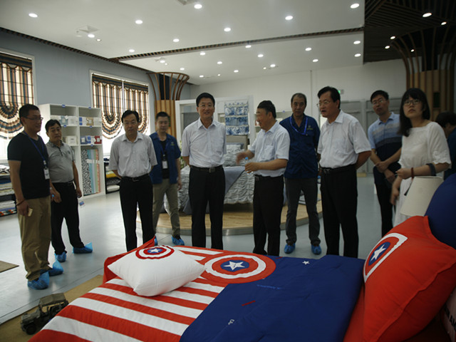 導(dǎo)讀:8月2日,濱州市市委常委、常務(wù)副市長張凱來到公司調(diào)研指導(dǎo)工作,公司黨委書記、董事長王力民陪同張凱一行參觀了科技產(chǎn)業(yè)園中的花布產(chǎn)品設(shè)計(jì)部、花二車間、污水處理、家紡展廳